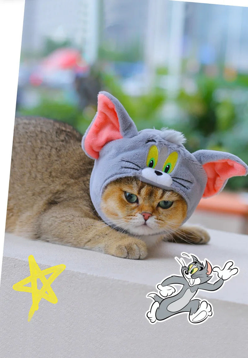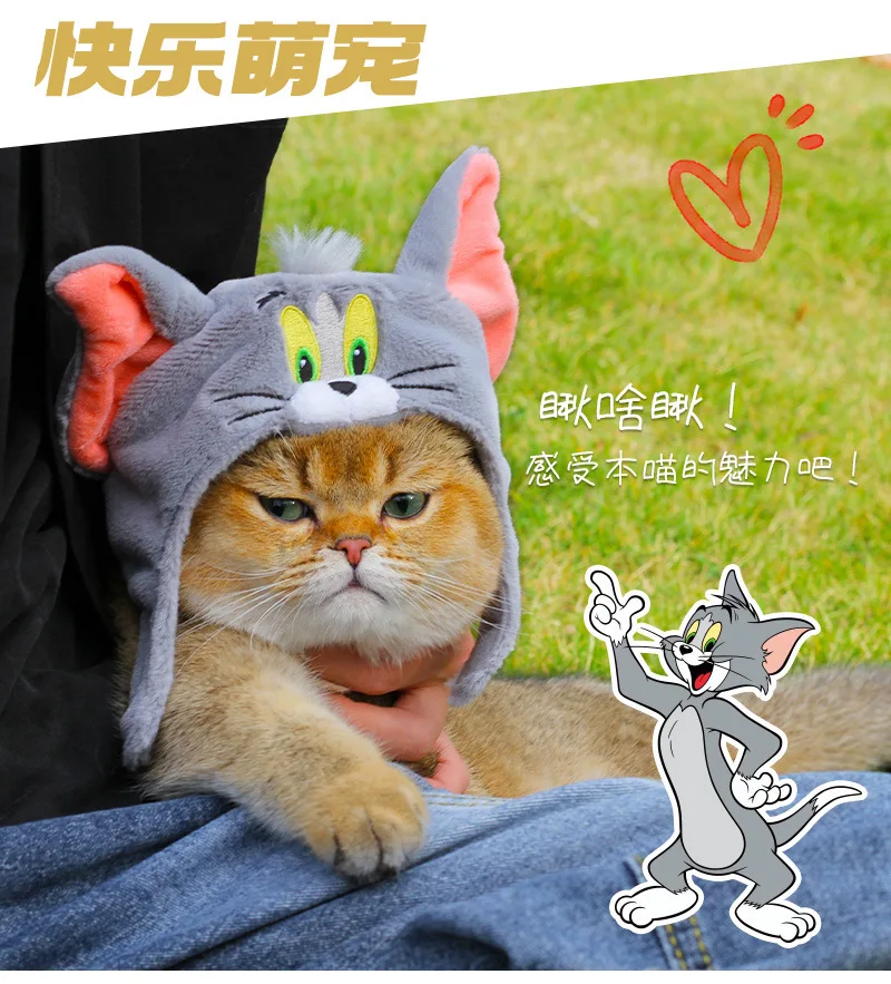 Tom and Jerry Pet Plush Headgear Cute Cat Mouse Cartoon Costume Hat Funny Headwear Dress Up